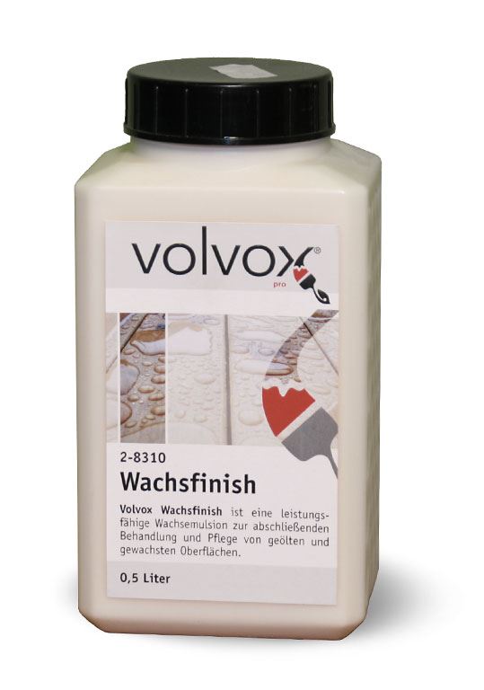 Volvox Wachsfinish Volvox Wachsfinish ist eine Emulsion aus Carnaubawachs und Wasser. Die damit behandelte Oberfläche ist sehr stabil und polierbar.