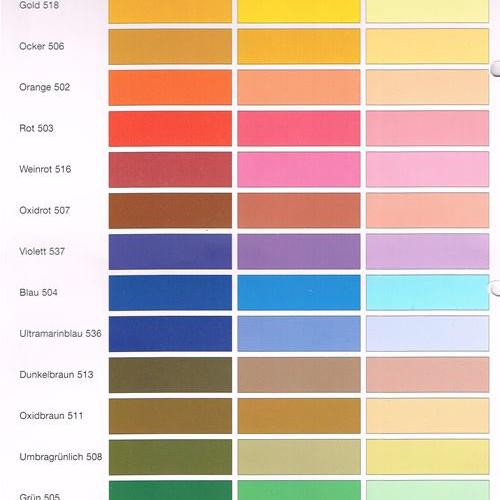 Wir mischen für Sie. Wenn Sie selbst mischen möchten, haben wir die Auro Kalk Abtönfarben für Sie. Farbkarte siehe unten.